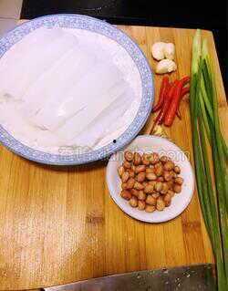 1. 准备食材:绿豆粉、淀粉、水、盐、醋、辣椒油、蒜泥、花生碎等。